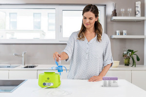 Por esta razón, incluso los bebés con FQ deben usar su terapia de inhalación todos los días para liberar el moco de los pulmones y así combatir el daño al tejido pulmonar y una reducción en la función pulmonar. La inhalación con solución salina hipertónica es un método probado en la fibrosis quística. Mejora lo que se conoce como limpieza mucociliar en bebés, niños pequeños y preescolares. La solución de inhalación es bien tolerada, como lo demuestran una serie de estudios.