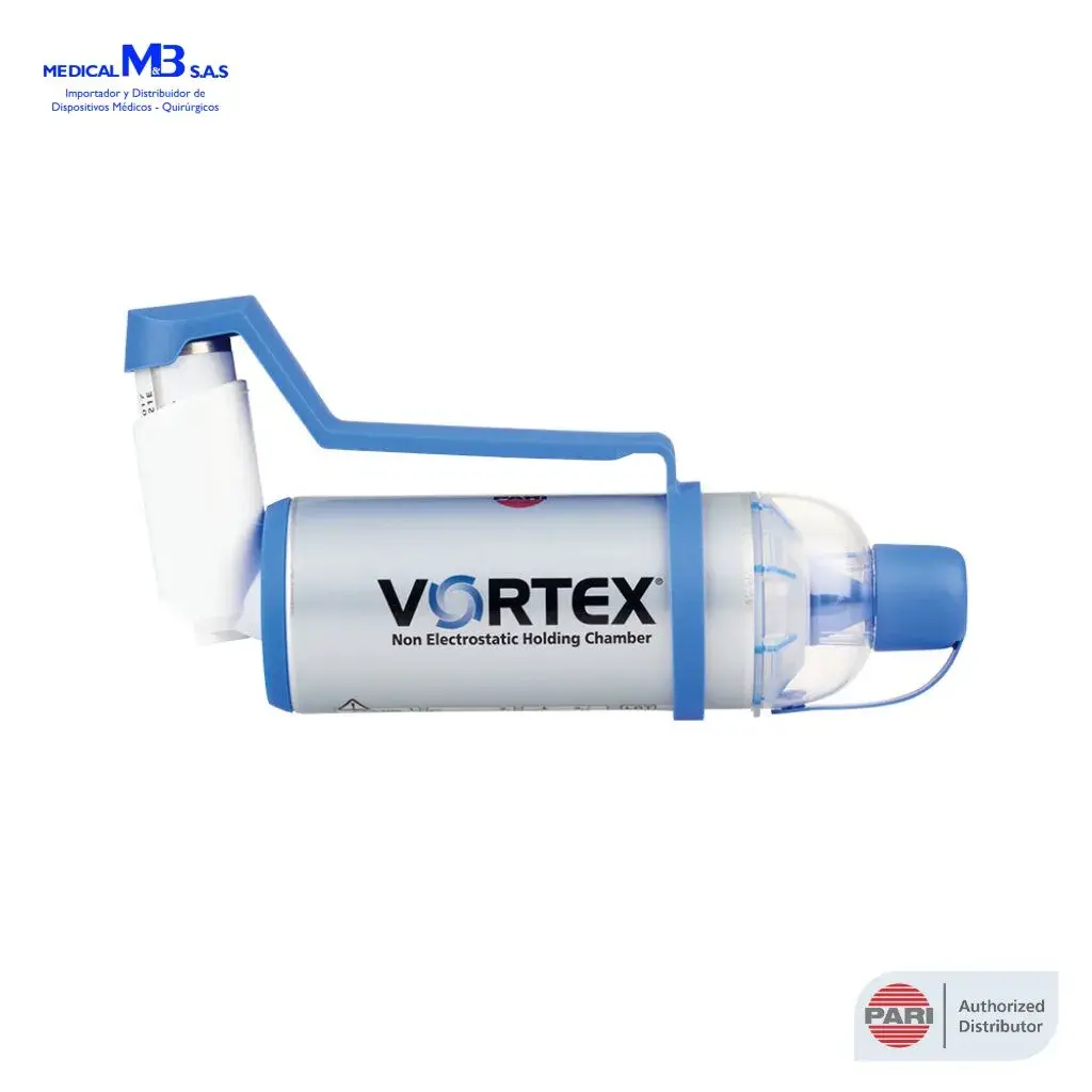 - Material No Electrostático: La cámara VORTEX está hecha de material no electrostático, lo que permite una administración más eficiente del aerosol, asegurando que hasta el 65% del medicamento alcance los pulmones del paciente.